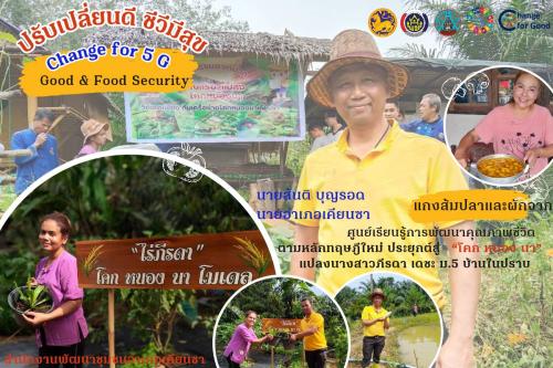 นายสันติ บุญรอด นายอำเภอเคียนซา ร่วมขับเคลื่อนกิจกรรม "ปรับเปลี่ยนดี ชีวีมีสุข" (Change for 5G) ภายใต้แนวคิด "ผู้นำต้องทำก่อน" ได้ยึดหลักปรัชญาของเศรษฐกิจพอเพียงและแนวพระราชดำริของสมเด็จพระกนิษฐาธิราชเจ้า กรมสมเด็จพระเทพรัตนราชสุดาฯ สยามบรมราชกุมารี มาใช้เป็นแนวทางในการดำเนินชีวิต โดยการปลูกผักสวนครัว พืชสมุนไพร และไม้ผลมากกว่า 30 ชนิด เพื่อสร้างความมั่นคงทางอาหารและลดค่าใช้จ่ายในครัวเรือน พร้อมส่งเสริมให้ประชาชนในหมู่บ้านปลูกผักสวนครัวสำหรับบริโภคภายในครัวเรือน ซึ่งเป็นการสร้างรายได้และเสริมสุขภาพจากเมนูอาหารที่ดีต่อสุขภาพ ณ ศูนย์เรียนรู้การพัฒนาคุณภาพชีวิตตามหลักทฤษฎีใหม่ ประยุกต์สู่ "โคก หนอง นา" แปลงนางสาวภีรดา เดชะ หมู่ที่ 5 บ้านในปราบ ตำบลบ้านเสด็จ อำเภอเคียนซา จังหวัดสุราษฎร์ธานี